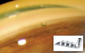 Trabecular Bypass surgeries work by bypassing the trabecular meshwork. This is the structure inside the eye’s natural drainage system that provides most of the resistance to outflow. It is located in the angle of the eye where the iris (the colored structure containing the pupil) meets the sclera (the white wall of the eye). The Kahook Dual Blade by New World Medical excises a large portion of the trabecular meshwork through a very small incision. This exposes the underlying collector channels that carry the fluid away through the blood vessels. The iStent from Glaukos is the other major form of bypass surgery. It is a tiny snorkel like device that is inserted through the trabecular meshwork to bypass it and gain direct access to the collector channels, thereby allowing better drainage.