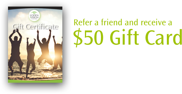 There is no greater compliment we can receive from our patients than a referral to friends and family. We sincerely hope we were able to provide you with outstanding care and an excellent visual outcome that left you feeling inspired to confidently refer friends and family to Loden Vision Centers. As our way of saying thank you, we’ll send you a $50 gift card for every friend or family member* that has a LASIK or PRK procedure at Loden Vision Centers.