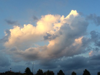 There are days when the airline contrails divide the sky into geometric shapes, or the sun backlights a cloud to create a glowing corona.  And who can ignore the natural Christian postcard when the sun spots an opening in the cloud cover and sends vivid beams toward earth?  How about rainbows?  I could also go on and on describing the gorgeous color variations at sunset.  Blazing fire of brilliant oranges and golds, neon pinks and purples against a backdrop of baby blue.  Stunning.  The human eye can discern millions of colors, and some sunsets seem to cover the entire spectrum!  One last thing.  I love lightning as well, especially heat lightning.  Once, I laid down in my driveway for half an hour on a warm spring night to watch a coming storm.  The heat flashes were incredibly low and covered the entire sky.  It was like a free fireworks show with God as the lighting director.